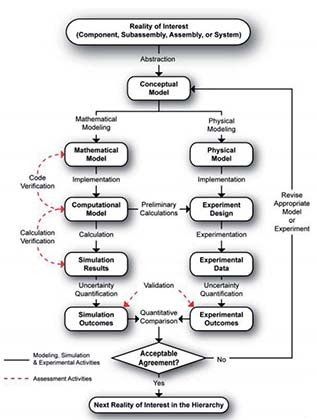 And so, what we want to do with the validation activity is to compare those simulation results- whether it's linear elasticity or fluid mechanics, laminar flow, turbulent flow, reacting flow-with the experimental measurements that we have because in every mathematical model, you have approximations and assumptions that are built into the model itself. For example, if you go from the general field of continuum mechanics down to linear elasticity, there are a tremendous number of assumptions that get you to that point, and maybe those assumptions are not valid for your actual application. That's why we have to do comparison with experiment.