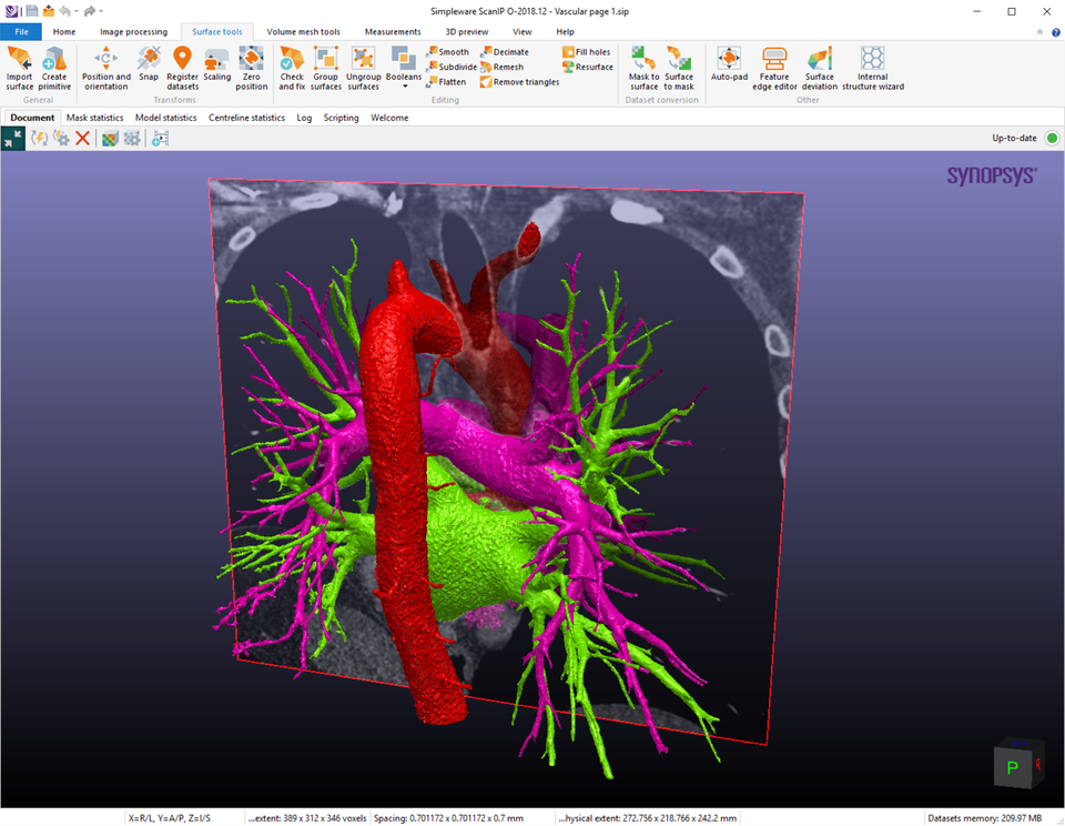 Synopsys Simpleware™ software provides a complete environment for working with 3D image data (such as MRI, CT, micro-CT). As well as image visualization, analysis, and processing tools, the software offers export options for 3D printing and CAD, as well as bolt-on modules for CAD integration, FE mesh export, NURBS, and effective material property calculations.