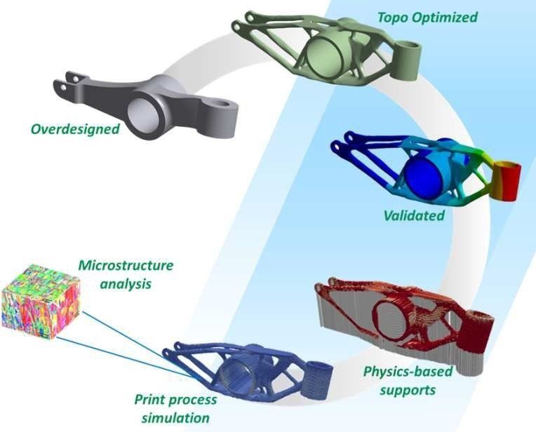 Figure 2 – Design for additive manufacturing: from topological optimization to the prediction of the microstructure