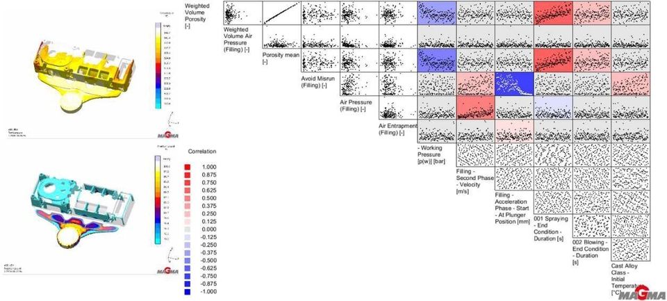 Figure 5 - Correlation matrix based on virtual DoE of castings