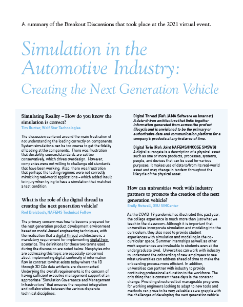 The 2021 NAFEMS World Congress will include a session on, "CAE in Automotive Development: State of the Art, Technology Changes and Future Trends." (more information)