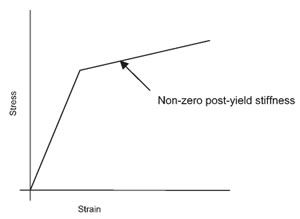 The limit load is obtained from a limit analysis and loads larger than this cannot be sustained by a (theoretical) structure with a perfectly plastic material. But a higher load, termed the plastic collapse load, can often be sustained by a plastic analysis of the same structure, which, as mentioned in the previous article, includes a more realistic representation of the material stress-strain relationship in having a positive stiffness for the post-yield portion. This is sometimes referred to as a strain-hardening material model (see diagram). Plastic analysis can also include large-displacement (non-linear geometry) effects. (Because of the non-zero post-yield stiffness, a plastic analysis allows an entirely plastic region to sustain some of the increase in post-yield load. This is in contrast to a limit analysis and is why the plastic collapse load is higher than the limit load.) As with a limit load prediction, the plastic collapse load would be seen as the highest convergent load increment in a well-configured finite element analysis.