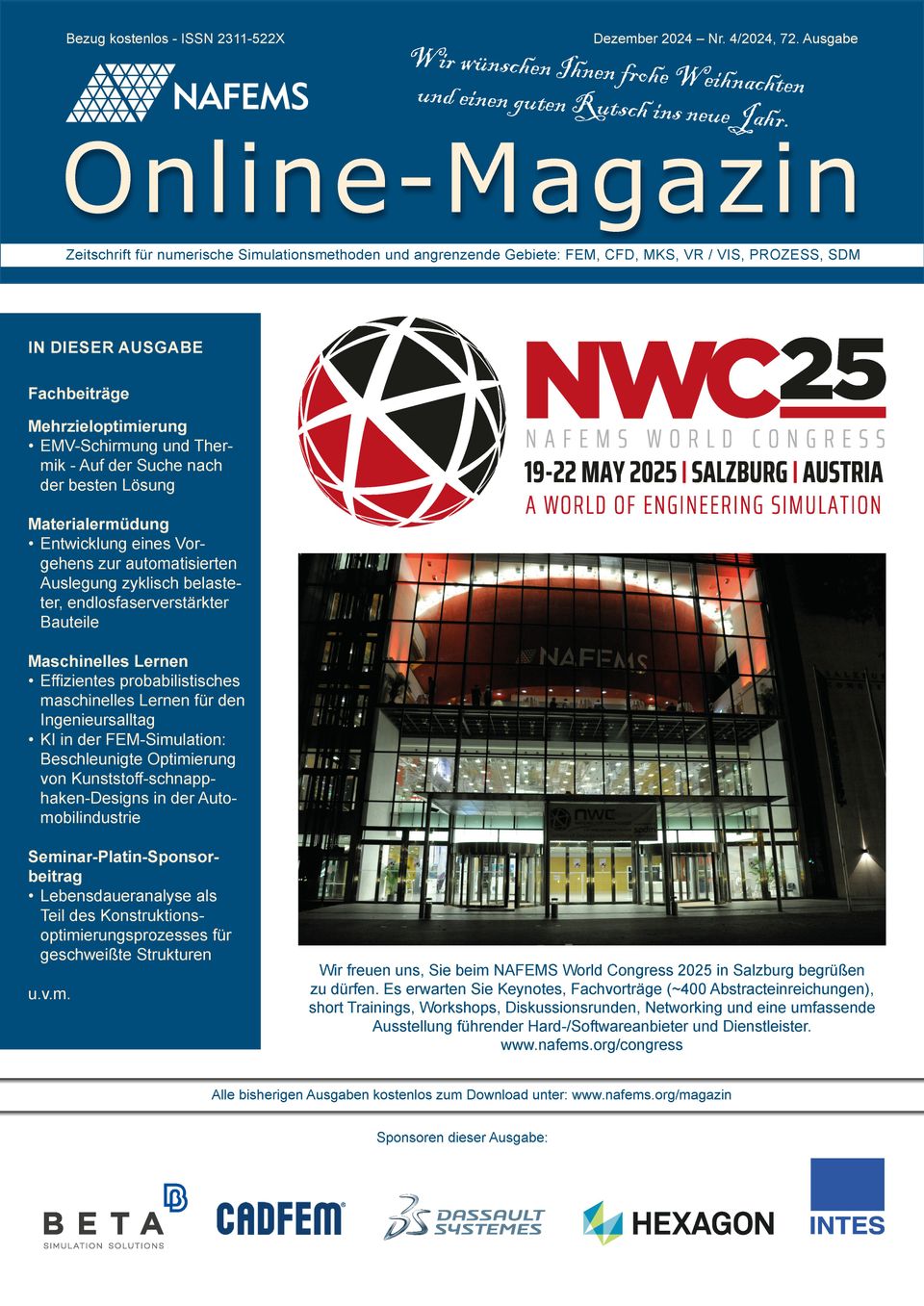 The 72nd edition of the NAFEMS Online-Magazine with technical reports, information on upcoming events and trainings etc. is now available for free download.