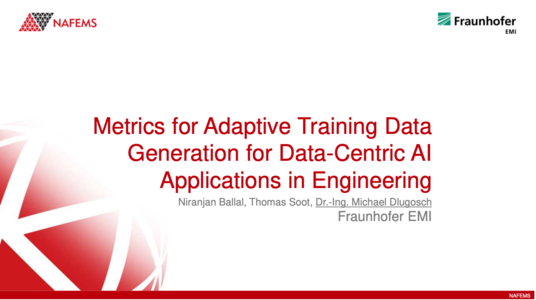 The presentation by Niranjan Ballal, Thomas Soot, and Dr.-Ing. Michael Dlugosch from Fraunhofer EMI, titled "Generation for Data-Centric AI Applications in Engineering," focused on the vital role of efficient data generation in applying Machine Learning (ML) methods in engineering contexts, particularly for predicting injury risks in multi-modal traffic safety. The motivation behind their research, part of the ATTENTION project funded by the German Federal Ministry for Economic Affairs and Climate Action, is to address the significant challenge posed by vulnerable road users (VRUs) who constitute the largest share of deaths in urban traffic. The research emphasizes the overproportionate share and increasing severity of injuries among VRUs and suggests that ML methods can predict structural dynamics within sub-seconds. However, the complexity and scarcity of training data are major hindrances to the widespread adoption of ML-based injury risk prediction. The presentation stressed the importance of data-centric ML, which focuses on data rather than the ML model to increase efficiency and performance in complex domains. It involves engineering experts to interpret data and its context, ensuring that the data contains all relevant information and formalizing this expertise into rules and metrics. This approach is aimed at generating high-quality synthetic data, leveraging small datasets for ML, and dealing with complexity while increasing explainability. The stages of adaptive data generation were discussed, highlighting the use of existing simulation data from former engineering R&D processes, deliberate data generation with Design of Experiments (DoE) methods, and using feedback loops to optimize ML model performance by iteratively resampling the most valuable data points. The goal is an adaptive data generation pipeline that efficiently optimizes for performance and reusability. The pipeline's implementation and testing for both generic mathematical and real application scenarios were mentioned, along with its use in the ATTENTION project. Future work includes evaluating the overall pipeline performance, introducing further expert-driven metrics, assessing the effects of different ML model types, and adapting and evaluating more use cases.