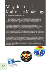 Today’s economy is a very dynamic and pressing environment. Companies are constantly looking for ways to improve the performance and/or lower costs of their existing products. In addition to that, most companies are looking for disruptive technologies to put their business apart from competition. With that,innovation is key to the survival and growth of all companies.Recent studies show that nearly 70% of product innovation relates back to the development of new materials or to the combination of existing materials in a new fashion [1]. The problem lies in the fact that materials innovation today is very inefficient, especially the adoption of new materials. Developing and certifying new materials is a very long and expensive endeavor. Part of that is due to extensive physical testing requirements. And those physical testing are necessary today because in many cases engineers do not understand well enough how these new materials fail.An efficient way to minimize the amount of required physical testing is by the use of computer simulation. However, traditional simulation technology was not made for complex multiscale multi-phase materials. Materials innovation usually occurs at the microscale level, by fine tuning properties of individual constituents, by changing their formulation or by reinforcing specific constituents with nanoparticles or fibers - so they are multi-phase materials. Another very important factor is that the weakness of materials lies in existing manufacturing induced defects - and those defects are usually only noticeable at the microscale level. The material’s microstructure is therefore its DNA.
