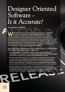 • The tool needs to be accurate enough to correctly inform the direction that a design should take. The software doesn’t need the level of accuracy that can be achieved by a full blown general purpose analysis package but the designer, and everyone using the designer’s input, must have confidence in the tool.