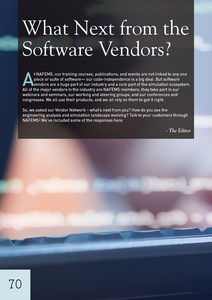 At NAFEMS, our training courses, publications, and events are not linked to any one piece or suite of software— our code-independence is a big deal. But software vendors are a huge part of our industry and a core part of the simulation ecosystem. All of the major vendors in the industry are NAFEMS members; they take part in our webinars and seminars, our working and steering groups, and our conferences and congresses. We all use their products, and we all rely on them to get it right.