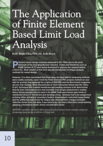 Pressure vessel design methods advanced in the 1960s due to the early demands of the emerging Nuclear industry. Codes and Standards such asASME Section III [1] were being developed to address the relevant failure criteria. Most notable at that time was the introduction of fatigue analysis methods for vessel design.However, it is often overlooked that these were the days before computing methods were readily available, never mind the Finite Element (FE) analysis method we now take for granted that spawned the origins of NAFEMS and the Benchmark magazine you are now reading. Shell discontinuity or shell interaction theory was the ‘stateof-art’ technique that enabled membrane and bending stresses to be determined directly from interaction forces and moments from simple axisymmetric models. Hence the acceptance criteria used in the ASME Code were based upon limits of membrane stress or membrane plus bending stress. Stresses had to be categorised as being either primary or secondary (load or displacement controlled respectively) and the additional peak stress for fatigue was obtained from a fatigue strength reduction factor from test data, if you were lucky, but more often from conservatively applying a theoretical elastic stress concentration factor.