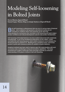Bolt self-loosening is a phenomenon that can occur in various types of fastenedjoints. Joint compliance, bolt geometry, and external loading can allcontribute to conditions where self-loosening can be observed. Understanding the mechanisms that contribute to self-loosening will lead to higher product confidence and reduced development costs for new product introductions. Self-loosening of threaded fasteners has been studied extensively both analytically and physically. In one of the foundational publications on this subject, Junker concluded that self-loosening occurs when relative movement occurs between the thread and head of a fastener. Bending forces, prevailing torque, and friction present in joints with transverse motion all combine to loosen fasteners. Analytical methods have been used to improve upon this understanding, with each successive study contributing to enhanced simulation capabilities. The study presented here sought to build upon these learnings to provide an enhanced understanding of the physics involved in bolt self-loosening.