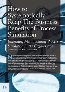 Manufacturing process simulation can be technically challenging because it often requires a chain of advanced numerical simulations of complex multi-physics problems, each needing detailed input data that is not always easy to obtain (material properties, friction behaviour….) However technical capabilities have progressed tremendously and stakeholders, such as material suppliers, are taking an increasingly active role in making input data available; yet industry still spends millions on shop floor trials and manufacturing quality issues that might have been avoided or at least reduced using process simulation. The reason for this is that many companies are not yet organised for the systematic, profitable use of manufacturing process simulation.