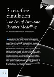 While the benefits are great, polymer forming presents challenges to simulation beyond those associated with metals. Often the process involves both contact and large material deformations, both of which make it difficult to converge on an accurate solution. While this kind of simulation is common for metals, many engineers have little confidence in the results when it comes to polymers. Polymers are often highly temperature- and rate-dependent, exhibiting significant stress-relaxation, creep and recovery, and exaggerated forminginduced anisotropy. We illustrate in this article that the technology to model polymers accurately exists, even under large deformations. We explore the steps required to get an accurate model of an example polymer, polyether ether ketone (PEEK), and show the consequences of oversimplification with a tube joining case study.