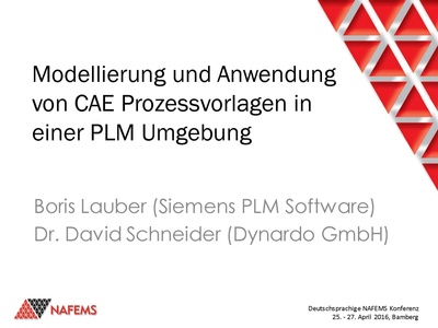 This presentation was made by B. Lauber, D. Schneider at the German-speaking NAFEMS 2016 German speaking conference held in Bamburg Germany on the 25th to the 27th of April 2016.
