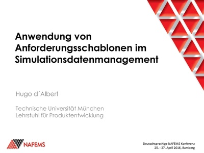 This presentation was made by H. d'Albert, S. Schweigert, U. Lindemann at the German-speaking NAFEMS 2016 German speaking conference held in Bamburg Germany on the 25th to the 27th of April 2016.
