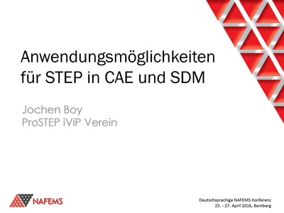 This presentation was made by J. Boy at the German-speaking NAFEMS 2016 German speaking conference held in Bamburg Germany on the 25th to the 27th of April 2016.