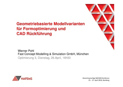 This presentation was made by W. Pohl at the German-speaking NAFEMS 2016 German speaking conference held in Bamburg Germany on the 25th to the 27th of April 2016.