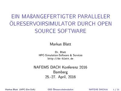 This presentation was made by M. Blatt at the German-speaking NAFEMS 2016 German speaking conference held in Bamburg Germany on the 25th to the 27th of April 2016.