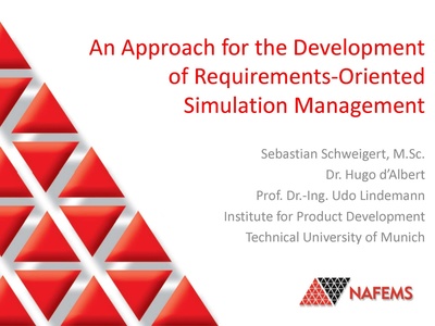 This presentation was made by S. Schweigert, U. Lindemann, H. d'Albert at the NAFEMS European Conferences, "Simulation Process and Data Management" & "Computational Fluid Dynamics (CFD) - Beyond the Solve" that were held in Munich, Germany on 2-3 December 2015.
