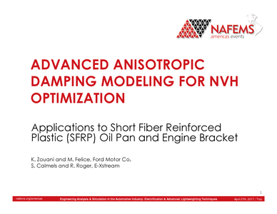 This presentation was made at the NAFEMS Americas conference "Engineering Analysis & Simulation in the Automotive Indistry: Electrification & Advanced Lightweighting Techniques"
