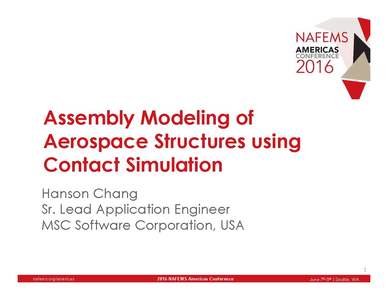 Presentation made by H. Chang at the NAFEMS Americas Conference 'New Frontiers in Product Modeling and Simulation' that was held in Seattle, Washington on 7-9 June 2016.