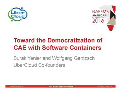 Presentation made by B. Yenier, W. Gentzsch at the NAFEMS Americas Conference 'New Frontiers in Product Modeling and Simulation' that was held in Seattle, Washington on 7-9 June 2016.