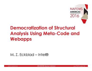 Presentation made by M. Z. Eckblad at the NAFEMS Americas Conference 'New Frontiers in Product Modeling and Simulation' that was held in Seattle, Washington on 7-9 June 2016.