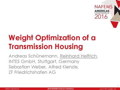 Presentation made by A. Schunemann, R. Helfrich, S. Weber, A. Kienzle at the NAFEMS Americas Conference 'New Frontiers in Product Modeling and Simulation' that was held in Seattle, Washington on 7-9 June 2016.