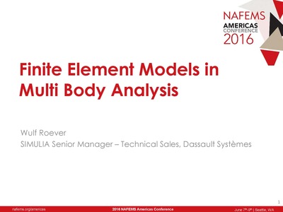 Presentation made by W. Roever at the NAFEMS Americas Conference 'New Frontiers in Product Modeling and Simulation' that was held in Seattle, Washington on 7-9 June 2016.