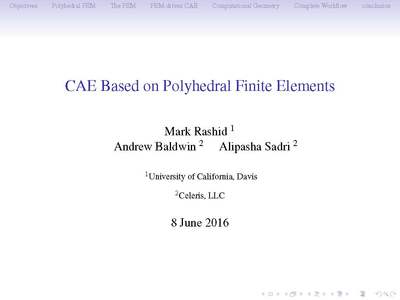 Presentation made by M. Rashid, A. Baldwin, A. Sadri at the NAFEMS Americas Conference 'New Frontiers in Product Modeling and Simulation' that was held in Seattle, Washington on 7-9 June 2016.