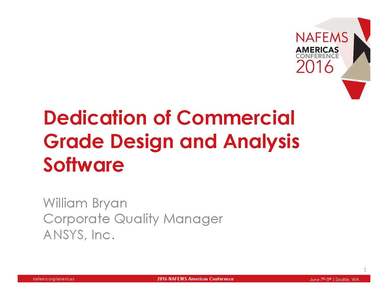 Presentation made by W. Bryan at the NAFEMS Americas Conference 'New Frontiers in Product Modeling and Simulation' that was held in Seattle, Washington on 7-9 June 2016.