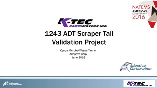Presentation made by C. Murphy, W. Tanner at the NAFEMS Americas Conference 'New Frontiers in Product Modeling and Simulation' that was held in Seattle, Washington on 7-9 June 2016.