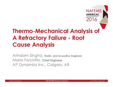 Presentation made by A. Singha, M. Forcinito at the NAFEMS Americas Conference 'New Frontiers in Product Modeling and Simulation' that was held in Seattle, Washington on 7-9 June 2016.