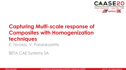 Composite materials have entered to the era of their extensive use as load bearing materials leading one step further the design of high performance structures. CAE solutions can offer to the engineer key tools for optimal and efficient design of composite materials that meet the engineering performance requirements. The scope of this work is to present a workflow for the Multi-scale modelling of components made with composite materials in the multi-disciplinary environment of ANSA pre-processor.