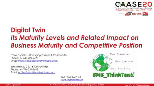 In this presentation we will discuss and define the capability “Digital Twin” as key with its various maturity levels and how it is linked and interacting with the other mentioned supplemental capabilities. The maturity levels will be related to the CMMI (Capability Maturity Model Integration) scale. Detailed explanation of supplemental elements, like deep learning, predictive analytics, Internet of Thing (IoT) and Industrial Internet of Things (IIoT) will be given as well as their links to the other elements of the digital twin maturity model. Those include infrastructure elements, like computing HPC and edge computing for instance) as well as communicating connectivity, like 5G. In addition, the topic of real-time capability will be discussed.