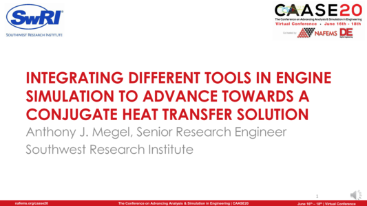 Thermal management in internal combustion engines is an important factor impacting overall engine efficiency and emissions. Engine designs continue to push the capabilities of current hardware closer to their performance and durability limits. Effectively modeling heat transfer through various engine structures would give a thorough overview of engine performance and durability, which is pivotal during design and development. Therefore, more accurate and reliable analysis is necessary to ensure that designs are robust. Many CAE tools exist for various stages of analysis, including computational fluid dynamics (CFD), finite element analysis (FEA), and durability analysis. For engine design, these analyses may consist of combustion CFD, cooling CFD and thermal FEA, structural FEA, and fatigue. Even though many software vendors now offer tools to cover most of these analyses, often the integration of different tools is not straightforward, OEM’s utilize tools from multiple vendors, or consultants may operate with a combination of the customer’s tools and proprietary software. Transient analyses may require different time steps between systems, or in some cases transient and steady-state analyses can be leveraged together. In any case, interoperability between CAE tools must be established, validated, and standardized to achieve the improvements desired from analysis.