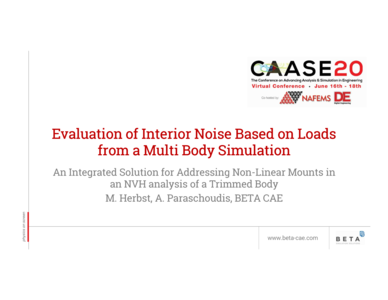 Classical CAE NVH analysis procedures are based on linear numerical methods and linear FE models. However, it is well known that important components of a vehicle, e.g. the chassis mounts, show a strong non-linear behavior which is not captured in a linear analysis. In order to overcome this shortcoming a 2-step approach is used: