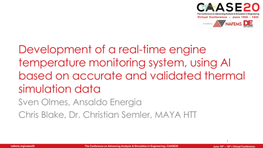 While stationary components of the engine can be monitored easily, it is very difficult and expensive, if not impossible, to monitor the temperature of some rotating parts which determine the engine conditions (cold / warm / hot). Those temperatures are critical to predict clearances, and have potentially a significant impact on the life span of the engine. The goal of this paper is to present an approach for real-time monitoring of these internal temperatures using AI, based on accurate and validated simulation data.