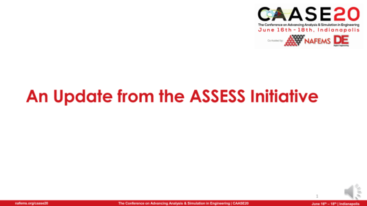 The ASSESS Initiative is a broad reaching multi-industry initiative with a primary goal to facilitate a revolution of enablement that will vastly increase the availability and utility of Engineering Simulation, leading to significantly increased usage and business benefits across the full spectrum of industries, applications and users. The vision of the ASSESS Initiative is to bring together key players for guiding and influencing the software tool strategies for performing model-based analysis, simulation, and systems engineering. To achieve this vision the ASSESS Initiative collaborates with multiple activities and organizations across the complete spectrum of Engineering Simulation including NAFEMS.