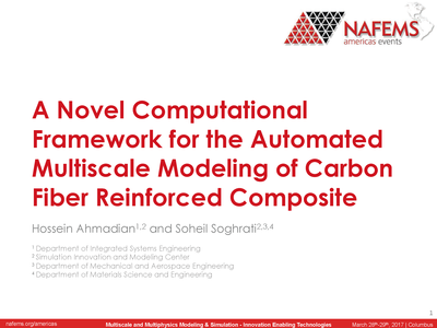 Multiscale and multiphysics modeling and simulation methods are nowadays essential tools for analyzing complex systems. For example, engineers often need to simulate large scale structures where the micro-mechanical properties of constituent materials greatly affect the overall behavior of the system. As such, the micro-structure and mechanical properties need to be introduced explicitly in the analysis procedure. Multiphysics plays an equally strong role is in the design of subsystems and how they interact with other subsystems and systems. One example is MEMS (microelectromechanical systems) which typically include small moving parts such as wheels, rotors, levers, and linkages, and how they operate within larger systems. Other examples include the creation of "designer materials" tailored for specific environments, as well as the simulation of nanoscale mechanics of cancer cells and how that is being extended to medical treatment devices and methods.Traditional simulation methods such as FEA are consequently pushed to their limits; fine detailing is required to represent accurately the actual response leading to prohibitive computational costs. This conference aims to introduce the essential principles of multiscale and multiphysics analysis for engineering problems and how to communicate micro-scale modeling and simulation information onto the macro-scale level, leading to reduced order, yet accurate, models. Focus will be on presenting the key benefits and limitations of multiscale and multiphysics analysis through illustrious examples pertaining to actual industrial applications.This material was presented at the “Multiscale and Multiphysics Modeling & Simulation - Innovation Enabling Technologies" Conference, hosted by NAFEMS Americas on March 28th-29th, 2017 in Columbus, OH.