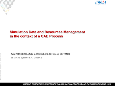 This presentation was made at the European Conference: Simulation Process and Data Management (SDM).