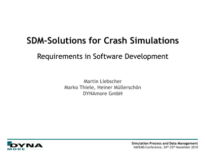 This presentation was made at the European Conference: Simulation Process and Data Management (SDM).
