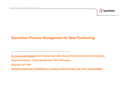 This presentation was made at the European Conference: Simulation Process and Data Management (SDM).