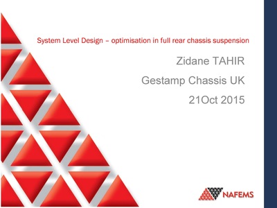 This presentation was made by Z. Tahir at the NAFEMS European Conference, 'Coupled MBS-FE Applications: From Classical Design to System Engineering' that was held in Turin, Italy on 20 October 2015.