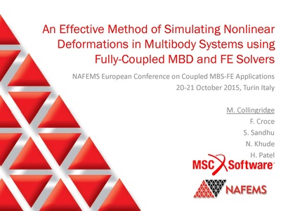 This presentation was made by F. Croce, N. Khude, S. Sandhu, M. Collingridge, H. Patel at the NAFEMS European Conference, 'Coupled MBS-FE Applications: From Classical Design to System Engineering' that was held in Turin, Italy on 20 October 2015.