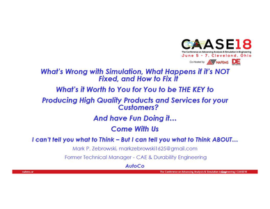 This presentation was made at CAASE18, The Conference on Advancing Analysis & Simulation in Engineering. CAASE18 brought together the leading visionaries, developers, and practitioners of CAE-related technologies in an open forum, to share experiences, discuss relevant trends, discover common themes, and explore future issues.