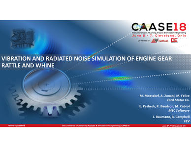 In this presentation, risk assessment for engine balance shaft gear rattle and whine errors states and their trade-off will be reviewed based on simulation results from use of Multi-Body Dynamics (MBD). The excitation leading to engine rattle and whine from the source through the path resulting in the engine vibration response will be thoroughly discussed. Additionally, various sensitivity analyses involving different engine loading conditions, gear backlash and gear micro-geometry levels will be presented. The output from the MBD analysis will be used to extend the engine vibrational assessment to acoustic response for gear rattle and whine. This includes generation of sound wave files simulating engine balance shaft gear rattle and whine.