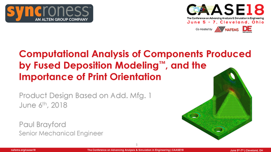 In the whitepaper this presentation will be based on, we examine the nature of material properties in FDM components and the difficulties in applying rigorous analysis. We also construct a demonstrative component to examine the comparative effects of the manufacturing build orientation variable on mechanical response.