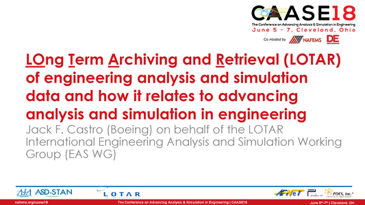 The LOTAR International Engineering Analysis and Simulation Working Group (EAS WG) continues its ongoing efforts to communicate with users and software developers about progress towards supporting the need for LOTAR and management of engineering analysis and simulation data.