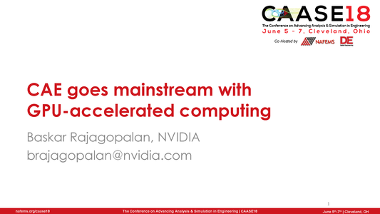 This presentation was made at CAASE18, The Conference on Advancing Analysis & Simulation in Engineering. CAASE18 brought together the leading visionaries, developers, and practitioners of CAE-related technologies in an open forum, to share experiences, discuss relevant trends, discover common themes, and explore future issues.