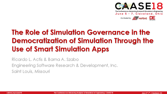 This presentation was made at CAASE18, The Conference on Advancing Analysis & Simulation in Engineering. CAASE18 brought together the leading visionaries, developers, and practitioners of CAE-related technologies in an open forum, to share experiences, discuss relevant trends, discover common themes, and explore future issues.