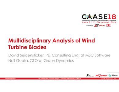 This presentation was made at CAASE18, The Conference on Advancing Analysis & Simulation in Engineering. CAASE18 brought together the leading visionaries, developers, and practitioners of CAE-related technologies in an open forum, to share experiences, discuss relevant trends, discover common themes, and explore future issues.